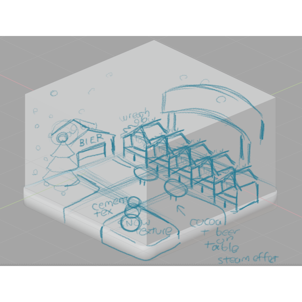 I was going for a sort of "cozy diorama" look that you see artists sharing so much of on social media. I also was thinking about the sort of pre-rendered backgrounds you would see a lot of in PSX-era games like the original Final Fantasy VII. The textures are all from AmbientCG, and I used some Google "germanic" font for the signs. As for modeling the objects, I did that all myself, with the exception of the tree I guess, for which I used some sort of Blender plugin or extension that lets you generate trees based on specifications that you input.